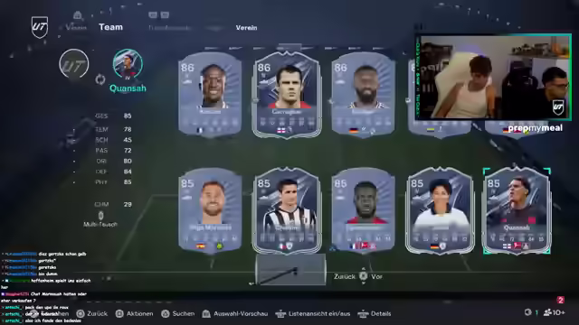 00:00:01Der Stream beginnt mit Internetproblemen und Frustration über schlechte Drafts, die den Spielspaß trüben. Seit sechs Drafts hat der Streamer kein gutes Team mehr zusammenstellen können, was seine Motivation mindert. Um sich dennoch zu motivieren, fordert er den Chat auf, ihn bei Siegen an ein Leckerli zu erinnern. Ein Spiel gegen einen türkischen Gegner soll zusätzliche Motivation bringen. Trotz anfänglicher Skepsis lobt er Cristiano Ronaldo für seine Schnelligkeit im Spiel. Es wird diskutiert, ob man aufgrund von Vorbestellungen zwei Evos gleichzeitig machen kann, was bejaht wird. Der Streamer äußert sich kritisch über den Bellingham-Bruder und lobt Ronaldo für seine Leistung im Spiel. Es wird über Taktiken und Spielerleistungen diskutiert, wobei Ronaldinho kritisiert wird. Der Streamer experimentiert mit Precision Shooting, um die Torhüter auszutricksen, da dies als Skill-Gap im Spiel angesehen wird. Er plant, diese Technik zu testen, obwohl er Bedenken hinsichtlich der Lernkurve hat. Es wird über die Kosten von Spielern wie Gravenberg diskutiert und die Schwierigkeit, gute Drafts zu bekommen, was die Draft to Glory beeinträchtigt. Der Streamer tauscht sich mit dem Chat über verschiedene Spieler aus und äußert seine Vorlieben und Abneigungen. Dabei werden auch taktische Überlegungen und die Bedeutung von Chemie im Team besprochen.