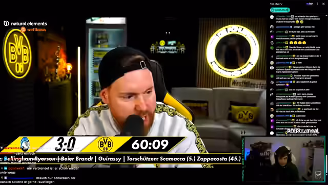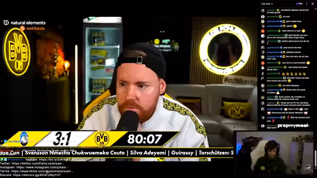 02:14:02Das Schiedsrichter-Entscheidungen aus dem BVB-Spiel werden im Detail und kontrovers diskutiert. Während der Streamer von einem klaren Elfmeter überzeugt ist, sehen andere Chat-Teilnehmer die Entscheidung als 50/50 an. Auch die rote Karte für Schlotterbeck ist Gegenstand der Debatte. Gleichzeitig wird auf einen Rassismus-Skandal in einem anderen Spiel eingegangen, der für weitere Diskussionen sorgt.