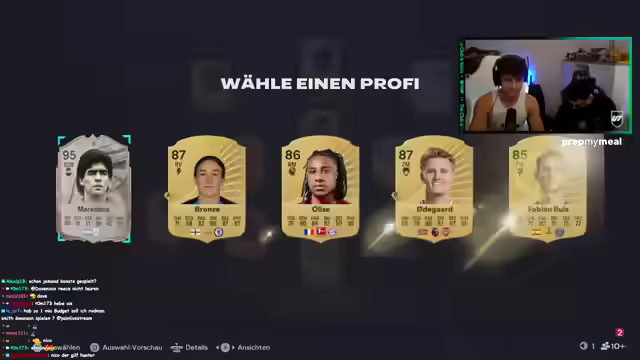 02:06:58Es wird der Draft-Modus in FIFA thematisiert, wobei der Fokus auf dem Aufbau eines Teams liegt. Es wird erwähnt, dass man keinen Vorabzugang hat, da kein Team vorhanden ist. Die Optik der präsentierten Spielerfrauen wird kommentiert, wobei eine Italienerin besonders positiv hervorgehoben wird. Es wird überlegt, ob man die MV-Liste des Chats haben möchte, wobei erwähnt wird, dass sich nichts verkauft hat. Es wird überlegt, ob man gegen Elias spielen soll und ein Zuschauer wird für seine Sucht gelobt. Es wird das Ziel diskutiert, einen Laden zu kaufen und Rabatte zu gewähren. Es wird die Frage aufgeworfen, ob man bereit wäre, heute gegen Bayern im Sturm von Hoffenheim zu spielen, wobei man im Spaß Eigentore verspricht. Es werden alte, wilde Kerle-Bücher erwähnt, die beim Aufräumen gefunden wurden. Es wird über die Grenze von 60 Vorlagen gesprochen und die Pay-to-Win-Mentalität in FIFA kritisiert. Es wird erwähnt, dass man treu ist, im Gegensatz zu sieben anderen Menschen. Es folgt ein Dank an einen Zuschauer für eine Spende und die Überlegung, was man sich davon leisten kann. Es wird über World of Warcraft und FIFA diskutiert, wobei man sich zwischen RTG und Draft entscheidet. Es wird die richtige Entscheidung betont, nicht die ganze Zeit Rivals spielen zu müssen.