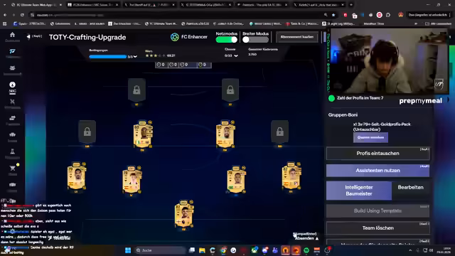 00:14:35Die Stimmung schlägt in deutliche Frustration um. Der Streamer äußert, dass das Crafting von Totti-Karten mit extrem hohem Rating fast unmöglich sei, da man kaum Karten zieht und die meisten Gegner in Ultimate Team bereits über starkes verfügen. Er kritisiert, dass der Fokus auf Geld- oder Zeitinvestitionen verlagert wurde, ohne ein sinnvolles Gleichgewicht. Als Alternative wird das Tool PaleTools erwähnt, das eine automatisierte und effizientere Möglichkeit zum Craften bietet und ihm wieder Spaß macht, nachdem er zuvor SBCs vermieden hat.