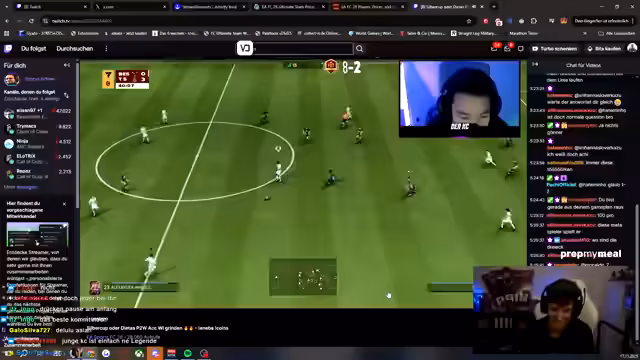 01:54:56Der Streamer diskutiert mit dem Chat über Spielstrategien in FIFA, insbesondere über die Effektivität von Intercept im Vergleich zu hohen Bällen. Er erwähnt, dass er den Season Pass noch kaufen muss. Während des Spiels kommt es zu erheblichen technischen Problemen: Die Server scheinen abzustürzen, was zu starken Rucklern und Lags führt. Er ist frustriert, da er noch zwei Siege in Rivals holen muss, aber das Spiel aufgrund der schlechten Verbindung unspielbar ist. Er überlegt, seine Konsole neu zu starten, in der Hoffnung, dass sich die Situation verbessert, aber die Probleme bleiben bestehen. Er beklagt, dass er aufgrund der Lags weder verteidigen noch angreifen kann.