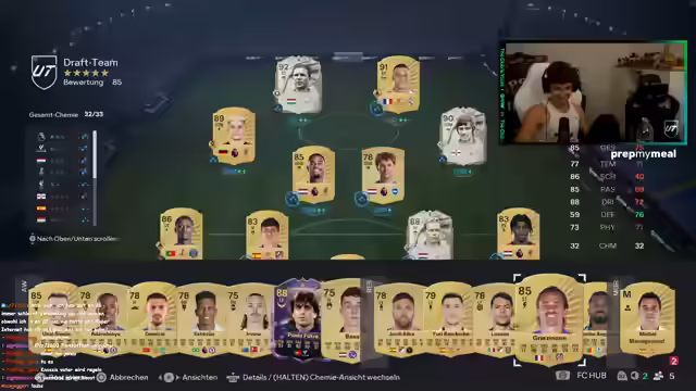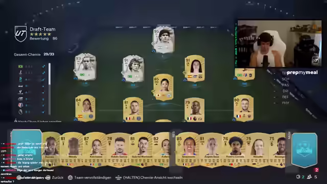 00:40:54Die Double-Frauen sind in der IV sehr stark. Es wird eine Expertise benötigt, um das Team zu perfektionieren. Der Gegner quittiert nicht, was die Planung stört. Der Streamer fühlt sich wieder gesund, dank Tee. George und Baby Jones spielen auf IFA. Es wird überlegt, Koundé rauszunehmen und Hakimi zu holen. Kimmich könnte durch Patri ersetzt werden. Alternativ könnte De Jong im ZDM und Frimpong auf RV spielen. Hakimi wird aus Sympathie ins Team genommen. Es wird überlegt, ob Patri nicht besser als De Jong ist. Lorente könnte eingebaut werden, wenn er billiger wird. Frimpong wird besser als Lorente eingeschätzt. De Jong hat die Rolle ZM mit tiefstehendem Notar++. Bonmarty macht Spaß, geht aber im ZM unter. Kachaui ist günstiger und genauso krass. Es wird spekuliert, dass Frauen an Wert verlieren könnten, wenn EA einen Defense-Patch veröffentlicht. Frauen tacklen oft alleine, dank Waschbär-Trade. Der Drehwieder geht alleine an, wenn der Trade vorhanden ist und die Position stimmt. Ein Sieg wäre wichtig. Der Cup wurde nicht gespielt, da es sich nicht gelohnt hat.