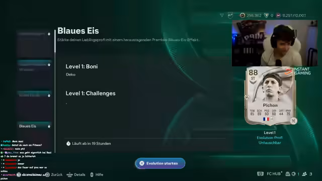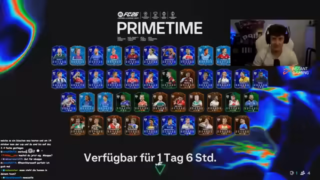 00:01:01Der Streamer bereitet sich auf die Veröffentlichung von Black Ops 7 vor, das um Mitternacht startet und einen Download von 200 GB erfordert. Gleichzeitig überprüft er ablaufende Evos in FIFA und öffnet Rewards auf einem Zweitaccount. Dabei zieht er eine besondere N-Form-Karte mit 93 Dribbling, die er bereits doppelt besitzt und deren Wert er auf 100k schätzt. Er überlegt, ob die Karte für eine Evo geeignet ist, da sie gute Pace und Playstyles besitzt, jedoch nicht in die aktuellen Evo-Kategorien zu passen scheint. Es wird auch über die Möglichkeit gesprochen, in FIFA Points zu investieren, um Futter für SBCs zu erhalten, insbesondere vor dem Black Friday.