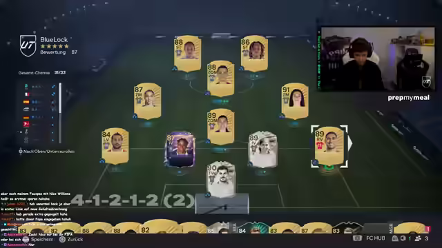 00:11:32Der Streamer startet ein Rivals-Spiel, obwohl er noch nichts gegessen hat, um seinen Tag nicht gleich zu versauen. Es wird über die Häufigkeit bestimmter Spielzüge in der Weekend League spekuliert. Die Uni-Zeiten von 12 bis 16 Uhr werden erwähnt, sowie ein anschließendes Treffen mit Kommilitonen und Pläne für Gym und Haushalt, was einen Abendstream unwahrscheinlich macht. Der Streamer spielt mit Mari im zweiten Kammer und bemerkt, dass viele Spieler gleich spielen. Es wird überlegt, welche Upgrades im Sturm als nächstes anstehen und wie man am besten Coins spart. Der Frimpong macht Probleme im Spiel mit Diany, indem er ihre Schüsse blockt. Es wird überlegt, welchen Stürmer man bis Usman spielen könnte, und die Schwierigkeit, passende Links für Smith zu finden. Der Streamer überlegt, Florian auf A10 zu spielen, um die Pässe zu verbessern. Das Spiel wird als sehr zufällig beschrieben, besonders nach einem Anschlusstreffer. Anstoß-Bugs werden als schlimmer denn je empfunden. Es wird überlegt, ob Franky neben Wirt im Sturm gespielt werden soll, da beide finesse straight zu haben scheinen.