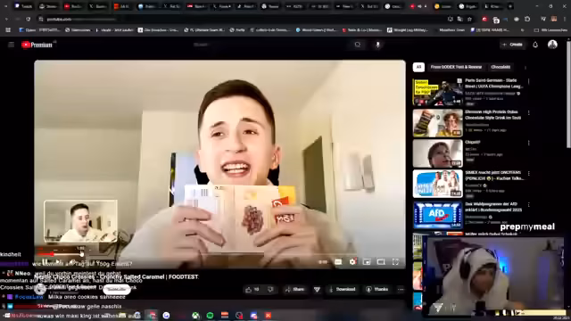 03:38:45Der Streamer spricht über seine aktuelle Ernährung und versucht, sein Gewicht bei 73-74 kg zu halten, während er Muskel aufbaut. Er isst täglich Avocado, Hähnchenbrust und Eier. Diskussionen über verschiedene Süßigkeiten und Snacks führen zu Tests und Meinungen. Chips, Pringles und andere Snacks werden bewertet. Es gibt eine ausführliche Debatte über die Vor- und Nachteile verschiedener Eissorten wie Ben & Jerry's und spezielle Editionen.