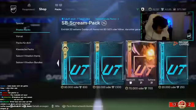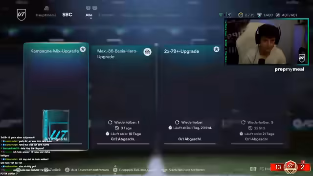 00:17:17Es wird über die Rentabilität von Spielerkarten diskutiert, insbesondere über einen 'billigen Penner', der sich nicht lohnen soll. Der Streamer spricht über die Evo-Karten und deren mangelnde Verbesserungen. Er erwähnt, dass er sich letzte Woche beim Fußball verletzt hat, aber sonst alles top sei und er hungrig sei. Die Wundertüte-Packs werden besprochen, wobei er sich zwischen Bahui und der Wundertüte entscheidet. Er stellt fest, dass man durch E-Busse keinen 99er-Boost erhält. Der Streamer äußert sich kritisch über den 'Schwitzer Cup', der keine Packs oder Belohnungen bietet, obwohl man mit einem Team unter 85 Jahren spielen muss. Er plant, den Cup nur kurz anzuspielen, um dessen Schwierigkeitsgrad zu testen.