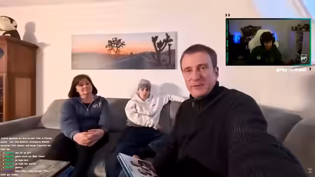 01:01:42Der Streamer berichtet über eine neue VR-Erfahrung mit der Familie. Nachdem er erst skeptisch war, testet er ein Mixed-Reality-Spiel, bei dem Aliens in der Wohnung gefangen werden müssen. Er ist überrascht vom Spaßfaktor und den technischen Fortschritten im Vergleich zu früheren Erlebnissen. Die Familie spielt gegeneinander, und es gibt einen spielerischen Wettkampf, wer die höhere Punktzahl erreicht. Diese Aktivität dient als lockere Unterhaltung während des Streams.