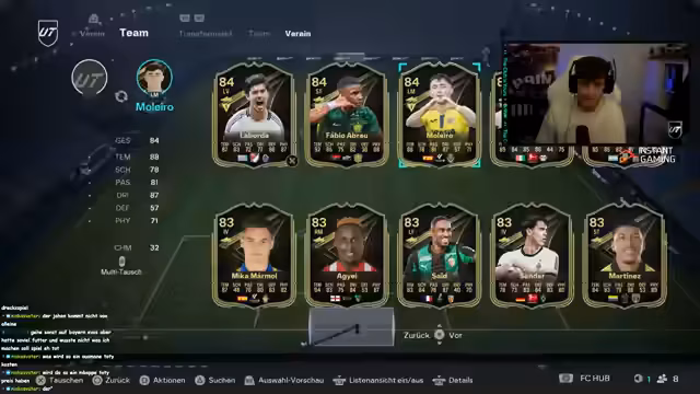 00:04:55Der Fokus liegt auf FIFA Ultimate Team, speziell auf Rivals Belohnungen und Pack-Öffnungen. Es werden verschiedene Packs wie 2x85 Plus Packs besprochen und deren Wert diskutiert. Der Streamer zeigt Interesse an bestimmten Karten wie Ceballos und bewertet diese. Es gibt eine Diskussion über Spielerbewertungen und potenzielle Evolutionsoptionen.