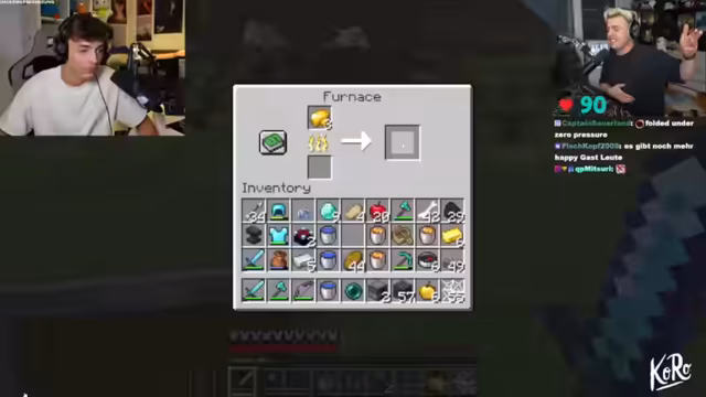 01:43:00Nach überstandenen Kämpfen und erfolgreichem Farmen können die ersten Ressourcen gesichert werden. Der Streamer craftet eine vollständige Eisenrüstung und findet Diamanten, was ein bedeutender Vorteil ist. Er plant, Diamant-Rüstung und verzauberte Waffen zu erstellen. Gleichzeitig wird die Gefahr durch andere Teams und den laggy Server deutlich, was PvP-Kämpfe unvorhersehbar macht. Der Verlust von Ressourcen durch Gegner, die das abgebaute Eisen klauen, stellt einen Rückschlag dar.