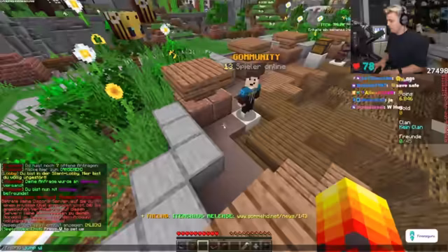 02:47:13Die Gruppe stellt fest, dass sie bisher nur wenige andere Spieler gesehen haben. Es wird überlegt, dass andere Spieler möglicherweise Spawn-Traps aufstellen könnten. Die Gruppe entdeckt ein Portal mit der Aufschrift "Soß". Es wird beschlossen, das Portal zu betreten, um zu entkommen. Die Gruppe wird von anderen Spielern verfolgt und flieht in den Nether. Es wird überlegt, ob man ein Boot bauen soll, um im Nether zu entkommen. Die Gruppe diskutiert, ob es erlaubt ist, eigene Nether-Portale zu bauen. Es wird beschlossen, ein Boot zu nehmen und zu fliehen. Die Gruppe stellt fest, dass die anderen Spieler Full-Diamond-Rüstung haben. Es wird überlegt, ob man ein eigenes Nether-Portal bauen soll. Die Gruppe beschließt, ein Dorf zu besuchen, um Ressourcen zu finden. Es wird überlegt, ob man die Schmiede im Dorf überprüfen soll. Die Gruppe diskutiert die Möglichkeit, Betten zu sammeln und andere Spieler im Nether in die Luft zu sprengen. Es wird überlegt, ob man das Risiko eingehen soll, andere Spieler im Nether anzugreifen. Die Gruppe beschließt, die Betten mitzunehmen. Es wird überlegt, wie man in den Nether gelangen soll, ohne hinter der Border zu spawnen und zu sterben. Es wird diskutiert, mit wem DMX im Team ist. Die Gruppe überlegt, welche Teams sie leicht besiegen könnten. Es wird beschlossen, nach Eisen zu suchen. Die Gruppe beschließt, zum Dorf zu gehen und zu hoffen, dass sie dort jemanden finden, den sie angreifen können. Es wird besprochen, wie man vorgehen soll, wenn man jemanden sieht. Die Gruppe einigt sich darauf, den Gegner zuerst zu beschießen und ihn dann anzugreifen. Es wird überlegt, ob man Brote mitnehmen soll. Die Gruppe beschließt, das Eisen mitzunehmen und ein paar Brote einzupacken.