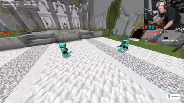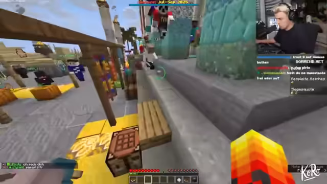 05:22:16Es wird über die Spenden für Charity gesprochen. Der Streamer hat ein Overlay gebaut und bittet darum, dieses einzublenden. Es wird über den Inhalt des Overlays diskutiert. Die Modi für die Duelle werden festgelegt: drei Runden Only Sword, drei Runden UFC und drei Runden Axe. Es wird ein Frame Jump gemacht und nach dem Cinema-Mod gefragt. Vor dem ersten Match werden die Loadouts überprüft: Schwert mit Schärfe 4, Fullport 4 Rüstung und Dia-Rüstung, aber keine Blöcke. Die Regeln werden noch einmal erklärt: neun Matches, wer zuerst fünf gewinnt, gewinnt. Es wird verkündet, dass auf Noriax gesetzt wurde und der Verlierer 500 Euro an eine Charity spenden muss. Die Duelle beginnen. Es wird ein ruhiger Spielstil angemahnt. Es wird über die Performance des Streamers und die Anfeindungen im Chat gesprochen. Es wird Musik zwischen den Runden gespielt.