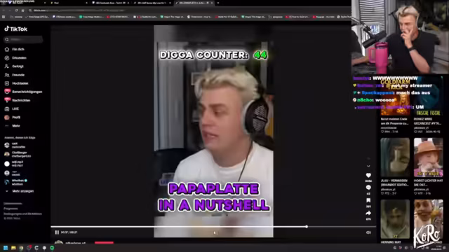 00:12:11Es kommt zu einer Diskussion über Allium-Samen, die wohl bei Bestellungen von Basti-Merch beilagen. Der Streamer zeigt sich überrascht und amüsiert über diese Beilage, die er als "Try-Hard-Shit" bezeichnet. Er verweist darauf, dass es wohl auch Autogrammkarten für die ersten 101 Bestellungen gab. Es wird ein Clip von Olle Rezmann erwähnt, der auf dem Klo zockt, was als Klassiker bezeichnet wird. Der Streamer erinnert sich an frühere Zeiten, als er in Fortnite Season 1 aktiv war und die Zuschauer noch im Kindergartenalter waren. Er kündigt an, NoRex anzurufen, der sich verspätet hat, obwohl er einen früheren Treffpunkt vorgeschlagen hatte. Der Streamer schildert humorvoll seine Erfahrungen mit niedrigem Akkustand am Handy und wie er im Flugmodus versucht, den letzten Prozent Akku zu sparen, um Musik hören zu können.