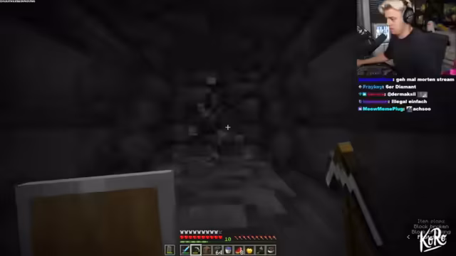 02:00:37Eine große Höhle wird entdeckt und durchsucht, was euphorisch gefeiert wird. Während der Suche nach Ressourcen wächst die Vorsicht vor Gegnern wie Creeper, die einen Spieler mit einem Schlag töten könnten. Der Streamer berichtet über technische Probleme, die den Stream ins Stocken bringen. Er erwähnt einen vermuteten X-Ray-Vorteil des Mitspielers, während sein eigener Stream kurzzeitig nur noch in 720p Qualität lief und sein PC einfriert.