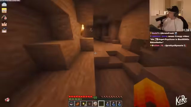 04:48:03Der Streamer versucht, das Rätsel um die Betten zu lösen, kann sich aber keinen Reim darauf machen, was sie mit dem Liegen zu tun haben könnten, da es dafür Nacht sein müsste. Er versucht, Gegenstände zu craften oder zu schmelzen, was jedoch nicht funktioniert. Schließlich entdeckt er, dass er Sand zu Glas schmelzen kann, was ihm zwei Glasblöcke einbringt. Währenddessen treten Audio-Probleme auf, die den Streamer dazu zwingen, das Spiel neu zu starten und nach der Ursache zu suchen, die er zunächst in einem Texture Pack vermutet. Nach mehreren Versuchen, die Soundprobleme zu beheben, stellt er fest, dass sein Audio-Setup lokal beschädigt ist, was ihn dazu veranlasst, die Musik zugunsten des In-Game-Sounds auszuschalten, um die Qualität für ein potenzielles Video zu gewährleisten.