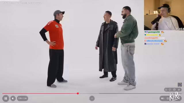 01:33:11Ein weiteres Meme wird vorgestellt, das vor drei bis vier Jahren viral ging und eine weiße Wand im Hintergrund zeigt. Der Streamer vermutet erneut, dass es sich um das 'Sucuk oder Aya?'-Meme handelt, das ihm immer noch unbekannt ist. Er fragt sich, ob er einen 'Alman-Algo' hat, da er dieses Meme nicht kennt. Es wird enthüllt, dass das Video ein Selfie-Video war, das in einem Hausflur zu Halloween gedreht wurde. Der Streamer kritisiert, dass TikTok-Memes der letzten vier Jahre nicht 'kulturell krass' genug sind, um in dieser Show eingeladen zu werden, und bezeichnet sich selbst als 'Onkel'. Er erinnert sich, dass Noahs und er selbst eingeladen wurden, aber er fühlt sich 'zu schlecht', da er die Memes nicht kennt. Es stellt sich heraus, dass das Meme tatsächlich 'Sucuk oder Aya?' ist, und der Streamer ist überrascht, dass er es immer noch nicht kennt. Er spekuliert, ob es nur Türken kennen und versucht, seinen 'Nummer 1 Türken' Kenan anzurufen, um dies zu überprüfen. Die junge Frau, die das Meme kreiert hat, erzählt, dass sie von einem TikTok-Video des Streamers inspiriert wurde und ihr Vater sie ermutigte, das Video zu drehen. Der Streamer ist überrascht, dass der Vater der jungen Frau so jung aussieht.