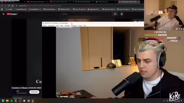 02:13:09Der Streamer thematisiert einen Sprachfehler, bei dem „Tisch“ und „Fisch“ als „Tich“ und „Fich“ ausgesprochen werden, was er hauptsächlich aus NRW kennt. Er lädt einen Experten für die nächste Podcast-Folge ein, um dies zu erklären. Es wird über die „Koronalisierung“ gesprochen, bei der aus „Rötlich“ „Rötlich“ wird. Er ist überrascht, dass dieser Sprachfehler nicht einfach abtrainiert werden kann und dass die gleichen Personen, die „Tich“ und „Fich“ sagen, auch das „Ch“ normabweichend als „Sch“ aussprechen. Dies wird als „Hyperkorrektur“ erklärt. Der Streamer wechselt zu Musik und stellt fest, dass Rap die neue Popmusik ist, was 2010 noch unvorstellbar gewesen wäre. Er diskutiert, ob Rap Pop als größtes Genre abgelöst hat und spekuliert, dass wir uns langsam in eine Elektrophase bewegen. Er argumentiert, dass EDM und Techno-Partys in den letzten Jahren deutlich an Popularität gewonnen haben und dass viele Remixe populär sind.