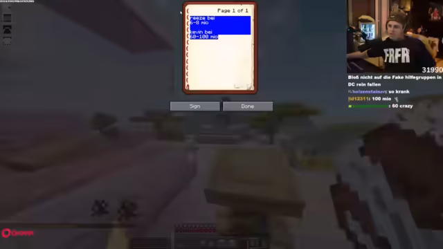 07:41:10Der Streamer und Ritzmann stellten fest, dass sie die einzigen verbliebenen in ihrer Gruppe waren, da andere wie Wiedern, Felix und Noah nicht mehr aktiv waren. Sie begaben sich auf die Suche nach einem Mason-Villager, um Quarz zu handeln. Nach anfänglichen Schwierigkeiten in der GHG-Trading Hall, die keine Masons hatte, fragten sie Basti, der jedoch im Roleplay vertieft war. Schließlich fragten sie Stegi, der einen Mason in Riole kannte, einem Ort in ihrer Nähe. Der Plan war, Eisen von Heiko zu holen und es gegen Emeralds zu tauschen, um dann Quarz von den Masons zu kaufen. Dies führte zu einer Diskussion über die Effizienz des Handels und die Notwendigkeit, mehrere Masons zu finden, da einzelne Villager nur begrenzte Mengen handeln. Die Streamer überlegten, wie sie die Handelswege optimieren und die Menge an Quarz, die sie benötigten, beschaffen könnten, um ihre Bauprojekte voranzutreiben.