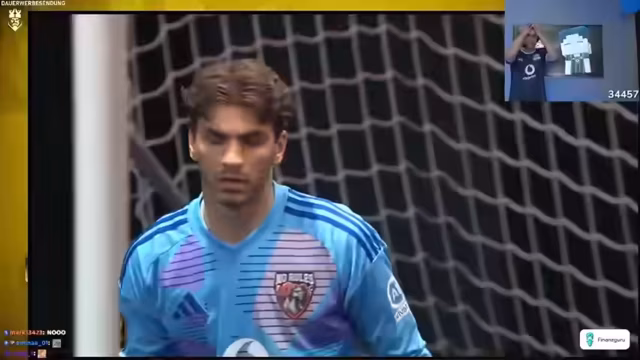 04:08:14Das Spiel beginnt und die beiden Streamer kommentieren es live aus ihrer Perspektive. Das Match ist intensiv und umkämpft, bleibt jedoch lange torlos. Nach einem Tor für Juniors FC rasten die Emotionen hoch, besonders bei den eigenen Spielern. Es folgen weitere aufregende Szenen, darunter ein knapp abgewehrter Handshake und ein erzielter Kopfball. Obwohl es zwischenzeitlich um alles geht, gelingt dem Team trotz einer zwischenzeitlichen Führung der Sieg, was den Streamer sichtlich überglücklich und erleichtert zurücklässt.