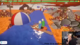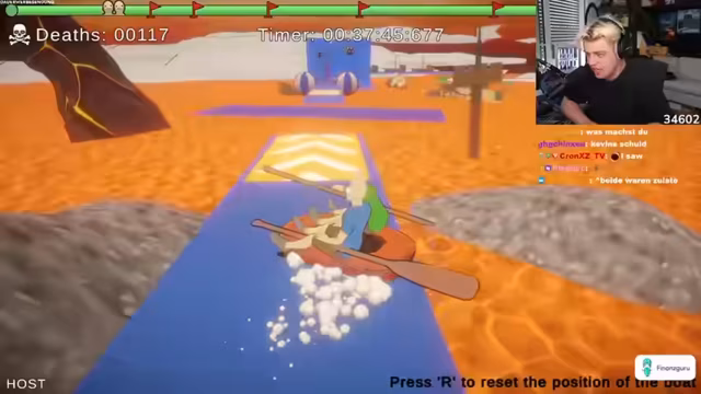 01:36:42Nach anfänglichem Schwierigkeiten gelingt es den Spielern langsam, eine bessere Kontrolle über das Boot zu erlangen und einen Rhythmus zu finden. Sie diskutieren die optimale Strategie, um Hindernisse wie Bälle zu umschiffen, ohne ins Trudeln zu geraten. Parallel zum Geschehen im Spiel wechselt der Streamer ständig die Themen, von der Kontrolle im Spiel über technische Probleme mit der Raumtemperatur und seiner Abneigung gegen Serien bis hin zu anstehenden sportlichen Herausforderungen, was den chaotischen Charakter des Streams unterstreicht.