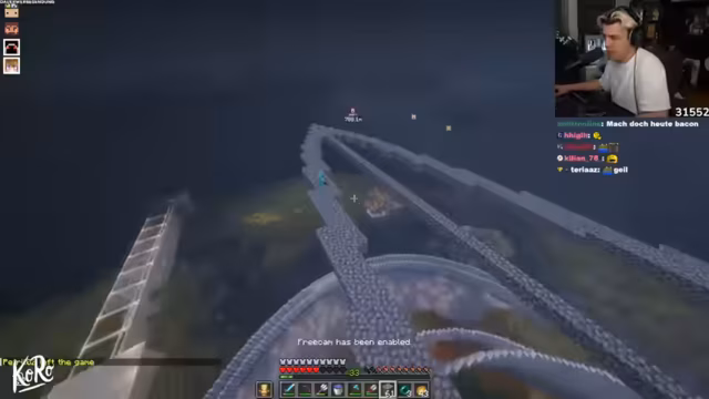 05:30:17Vorstellung und Einsatz eines Happy Ghast als fliegende Plattform im Spiel. Der Streamer hat zwei dieser speziellen Ghasts gefunden und sie in Wasser eingeweicht, damit sie wachsen können. Diese fliegenden Plattformen ermöglichen es den Spielern, schneller über große Strecken zu reisen und bieten einen strategischen Vorteil. Die Teilnehmer planen gemeinsam, diese Ressource zu nutzen.