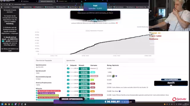 00:33:12Die Spendensumme steigt schnell an, und es wird ein weiteres Kind vorgestellt: Flo, 9 Jahre alt, kämpft gegen ein T-Zell-Lymphom und wünscht sich, sein Idol Jamal Musiala vom FC Bayern München live zu erleben. Die Community wird erneut zum Spenden aufgerufen, um das 10.000-Euro-Ziel zu erreichen. Kurz darauf wird bekannt gegeben, dass das Mountainbike-Ziel erreicht ist, und die Spenden werden auf andere unerfüllte Wünsche umgeleitet. Die Top-Spende des Tages, 553 Euro von "ein Haufen Weed", wird hervorgehoben. Es wird erwähnt, dass bei Erreichen von 15.000 Euro ein "Sellout-Stream" stattfinden wird, gefolgt von dem Format "Dumm Drauf" mit Basti, Herr Bergmann und Nickbit, und den "Domus-Votings" zur Bewertung der besten Papaplatte-Clips des Jahres.