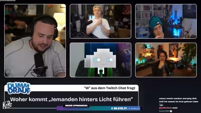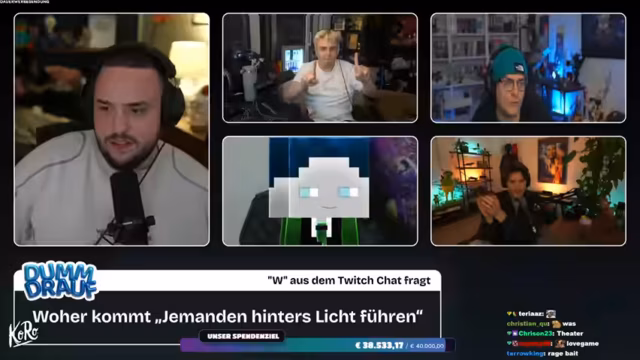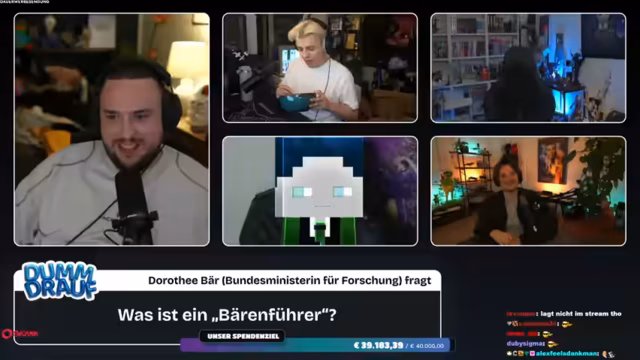 02:47:03Nachdem die technischen Probleme behoben sind, erklärt der Streamer das Konzept des „Dumm drauf“-Formats. Ähnlich wie bei einem früheren Fußballspiel-Stream wird ein Overlay verwendet, das in Minecraft integriert werden kann. Die Teilnehmer können selbst entscheiden, ob sie in Minecraft mitmachen oder nicht. Der Streamer hat bereits alles vorbereitet und eine „richtige Glotze aufgebaut“. Während der Vorbereitungen gehen weitere Spenden ein, darunter 100 Euro von Roman. Die Gesamtsumme der Charity-Aktion nähert sich der halben Million Euro, was als „insane“ und „sehr cool“ bezeichnet wird. Das Format beginnt mit den Teilnehmern Herr Bergmann, Basti und Niek, die sich auf die bevorstehenden Herausforderungen freuen.