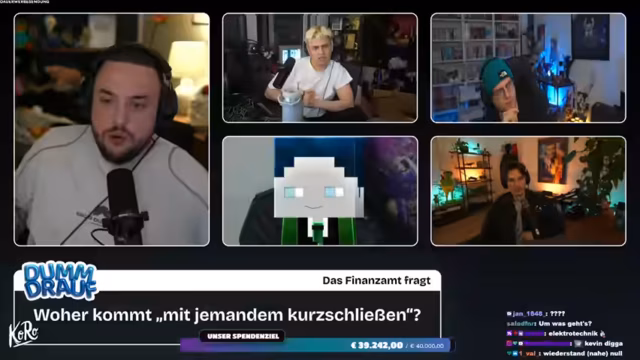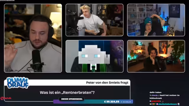 02:25:01Mit einer Spende von 250 Euro wird das Spendenziel für Felix erreicht, was im Chat mit großer Freude aufgenommen wird. Weitere hohe Spenden tragen dazu bei, die Gesamtsumme weiter zu steigern. Der Streamer äußert die Hoffnung, auch das Ziel für den Gravity Chair bald zu erreichen. Im Anschluss beginnt das Format „Dumm drauf“, bei dem es zunächst zu technischen Schwierigkeiten mit den Audio-Einstellungen der Teilnehmer kommt. Nach einigen Tests und Anpassungen können die Probleme behoben werden. Die Teilnehmer des Formats sind Herr Bergmann, Basti und Niek, wobei der Streamer betont, dass es sich um ein „frauenfreies Format“ handelt. Das Ziel, Heikos Spendensumme zu überbieten, wird als „impossible“ eingeschätzt, aber die bisher erreichte Gesamtsumme von 470.000 Euro wird als „unfassbar krank“ gefeiert.