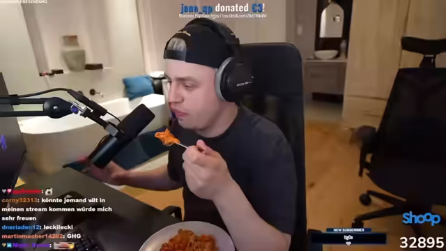 00:06:04Der Stream startet mit dem Streamer, der sein Mittagessen isst und den Chat begrüßt. Er erwähnt technische Anpassungen, die gemeinsam mit Tim vorgenommen wurden, um die Audio-Qualität zu verbessern. Dazu gehören das Platzieren von Kissen und das Aufstellen einer Gästematratze links von ihm. Er berichtet auch über den frisch eingetroffenen Red Bull-Kühlschrank, dessen Platzierung auf der Badewanne diskutiert wird, da keine passenden Stände verfügbar waren.