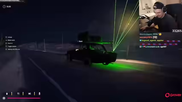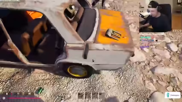 07:33:46Der Stream beginnt mit einem turbulenten Unfall, bei dem das Fahrzeug auf eine Mine fährt und in die Luft fliegt. Die beiden Streamer sind zunächst perplex, kehren aber schnell zur Tat zurück. Sie sammeln die umherliegenden Teile wie Reifen ein und stellen fest, dass das Ersatzlenkrad der "biggest call des Jahres" war, da sie ohne nicht weiterfahren könnten. Sie bauen den fehlenden Lenkrad und einen weiteren Reifen ein, um das Fahrzeug wieder fähig zu machen.
