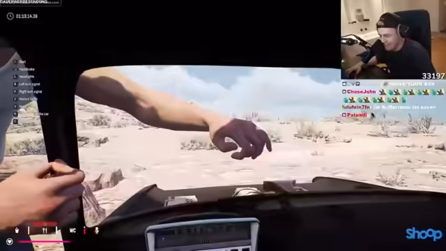 05:14:10Nach einem Unfall steigt Basti aus dem Auto aus und der Wagen ist nicht mehr fahrfähig. Die Situation ist chaotisch, da das Fahrzeug rückwärts rollt und der Tank offen ist. Die Streamer versuchen, die Orientierung wiederzuerlangen, und stellen fest, dass sie den Kompass nutzen müssen, um die Richtung zu bestimmen. Sie erkennen, dass das Auto nur noch durch Muskelkraft bewegt werden kann und planen, zum nächsten Loot-Spot zu gelangen, um das Fahrzeug zu reparieren.