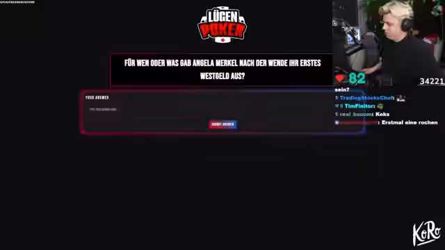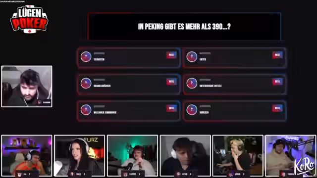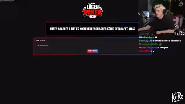 02:26:43Zu Beginn des Streams treten erhebliche technische Probleme auf, die den Start verzögern. Der Streamer muss Passworteingaben und Verbindungsprobleme mit Teilnehmer Ely klären, wobei es auch Verwirrung um die Sprache im Chat gibt. Nach einer längeren Phase der Fehlerbehebung und Entwarnung startet schließlich die eigentliche Quizshow mit dem Namen Lügenpoker, bei dem es darum geht, mit realistisch klingenden Antworten andere Teilnehmer zu täuschen, um Punkte zu sammeln.