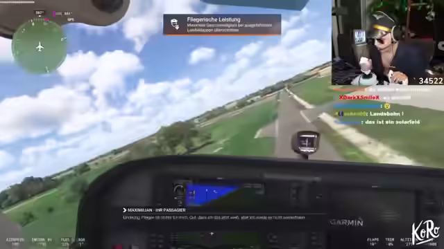 05:00:36Nachdem der Stickdrift vorübergehend in den Einstellungen gemildert wurde, gelingt der Start in die Luft. Die ersten Minuten des Fluges sind jedoch weiterhin holprig und von instabiler Steuerung geprägt. Der Streamer verliert die Kontrolle, als das Flugzeug von alleine an Höhe verliert und fast abstürzt. Durch Gegensteuern kann er die Maschine jedoch wieder abfangen. Die Passagiere, darunter Maximilian und seine Mutter, bleiben jedoch ruhig und scheinen die turbulenten Manöver des Piloten zu überstehen. Der Flugverlauf gestaltet sich deutlich schwieriger und unruhiger als geplant.