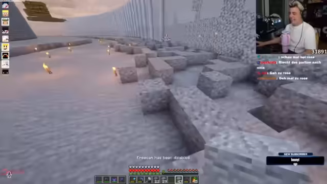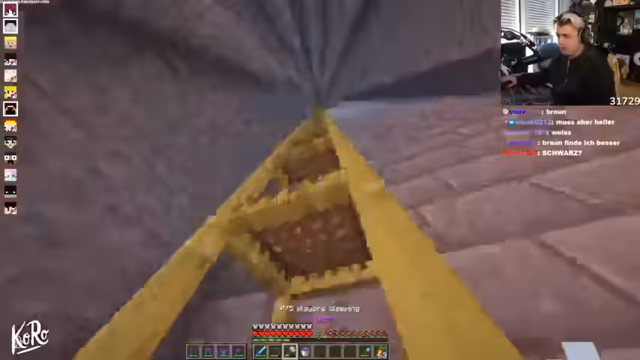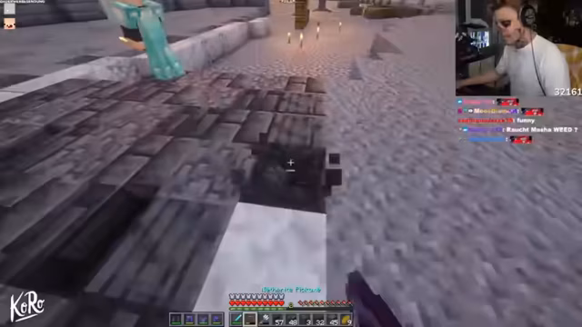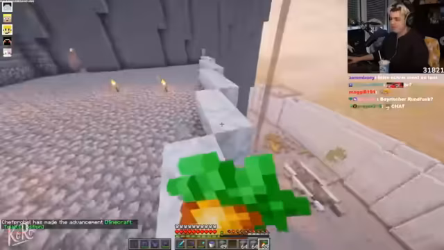 01:01:05Der Streamer bietet Unterstützung bei der Gestaltung der Halloween-Area und tauscht sich über die verwendeten Blöcke aus. Es gibt eine kurze Unterbrechung, um einen Chat-Kommentar über das verwendete Holz aufzuklären. Parallel dazu gibt es eine ungewöhnliche Diskussion über den Stream Dominiks, der angeblich mit nur 30 FPS gespielt hat, ohne es zu bemerken.