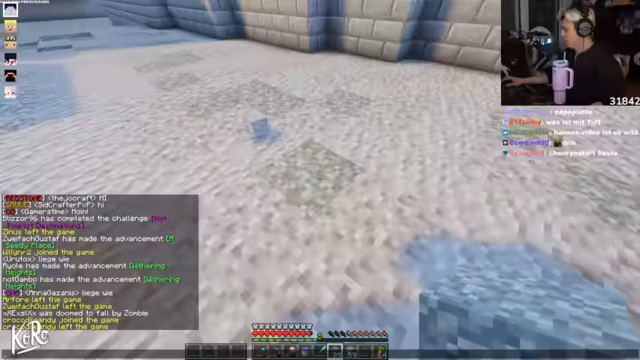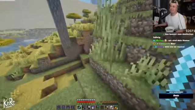 06:47:11Der Streamer beschließt, seinen Mitspieler Axel zu besuchen, der weit entfernt in der Spielwelt ist. Gemeinsam bauen sie ein Nether-Portal, um die weite Distanz zu überbrücken. Dabei tauschen sie sich über die genauen Koordinaten aus und überlegen, wie sie sicher und effizient reisen können. Der Streamer zeigt sich beeindruckt von Axels eigenständigem Bauprojekt und erkundigt sich detailliert nach dessen Fortschritten.