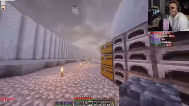 05:59:17Es findet eine intensive Diskussion über das Layout der geplanten Straße statt. Der Streamer und sein Team überlegen, ob und wie Häuser direkt in die Mauer integriert werden können, um Platz zu sparen. Die Breite der Straße wird hinterfragt und es werden verschiedene Baustile und Materialien wie Diorite und Calcite für das Pflaster abgewogen.