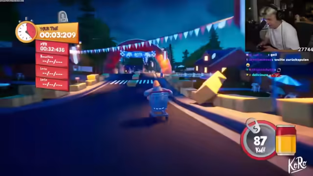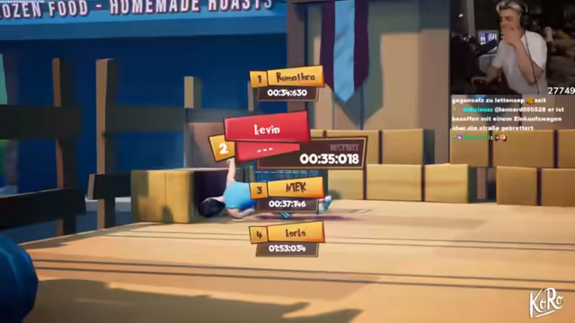 04:47:39Eine Gruppe von Streamern, bestehend aus vier Personen, darunter der Hauptstreamer, spielt gemeinsam das Spiel "Slackers Cards of Glory", bei dem man mit einem Einkaufswagen eine Strecke herunterfährt. Es wird erwähnt, dass man mit Bierdosen werfen kann. Es gibt technische Probleme beim Beitritt zum Spiel, da einige Spieler nicht in die Freundesliste aufgenommen werden können oder Schwierigkeiten haben, dem Spiel beizutreten. Nachdem die Probleme behoben sind, beginnen sie mit dem Spiel. Es stellt sich heraus, dass die Steuerung des Spiels nicht intuitiv ist und einige Spieler Schwierigkeiten haben, das Gas zu betätigen oder die Steuerung richtig einzustellen. Es wird vermutet, dass das Spiel besser mit einem Controller gespielt werden kann. Trotz der anfänglichen Schwierigkeiten und der teilweise verwirrenden Steuerung haben die Spieler Spaß am Spiel und versuchen, die Bestzeit zu erreichen. Es wird festgestellt, dass es eine Abkürzung im Spiel gibt, die jedoch schwer zu treffen ist. Die Spieler feuern sich gegenseitig an und kommentieren ihre Läufe. Am Ende des Spiels gibt es unterschiedliche Ergebnisse, wobei einige Spieler das Ziel erreichen und andere scheitern. Insgesamt wird das Spiel als unterhaltsam, aber auch herausfordernd beschrieben.