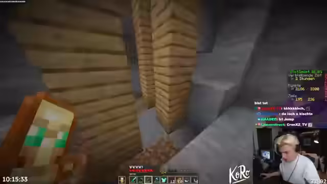 05:34:18Nachdem mehrere Kandidaten für das fehlende Essen ausgeschlossen wurden, verschärft sich der Zeitdruck dramatisch. Der Streamer unternimmt einen verzweifelten Versuch, ein Schwein zu finden, um gebratenes Schweinefleisch herzustellen, das als wahrscheinlichste fehlende Nahrung gilt. Die Suche in der virtuellen Welt wird zu einem wilden Chaos, in dem er nachts mit Enderperlen teleportiert, Tiere vergeblich jagt und der Humor langsam in Frustration umschlägt, als selbst seltene Biome keine Tiere spawnen lassen. Es herrscht eine Mischung aus Action und unverhohlener Verzweiflung.