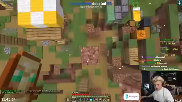 04:02:59Der Streamer fährt fort, Ressourcen wie Holz, Emeralds und verschiedene Nahrungsmittel zu farmen. Es kommt zu Herausforderungen, wie dem Finden von seltenen Tieren wie Wölfen und Hasen. Er tauscht aktiv mit Dorfbewohnern, um benötigte Gegenstände wie Kuchen zu erhalten, und muss dabei mit oft unwahrscheinlichen Handelsangeboten umgehen. Das Team arbeitet eng zusammen, um verbleibende Aufgaben für das Achievement-System zu erledigen.