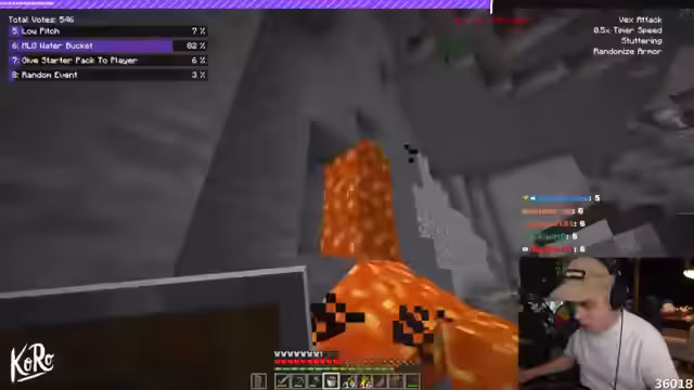 04:28:30Die Streamer finden eine Candle, Diamanterz und sind kurzzeitig in Büschen gefangen. Sie glauben, alles Wichtige gefunden zu haben. Als nächstes steht die Wahrscheinlichkeit für fünffachen Timer Speed an, was das Abbauen von Obsidian beschleunigen würde. Stattdessen erhalten sie den extremen Pogo-Stick-Effekt, was als ungünstig empfunden wird. Ein Teleport zu einem zufälligen Ort steht ebenfalls zur Debatte. Einer der Streamer erhält OP-Geld. Sie werden teleportiert, haben aber genügend Obsidian. Das Spiel scheint ihnen den Nether-Besuch zu erschweren. Sie benötigen nur noch zwei Lava. Einer der Streamer macht eine Axt und Eisenwerkzeuge. Sie bereiten sich auf den Kampf vor und gehen ins Wasser. Es könnte ein Random Event bevorstehen. Einer erhält Redstone. Sie tauschen Gegenstände aus und bereiten sich auf den Nether vor. Sie erhalten Vertical Controls und betreten den Nether zum zweiten Mal. Dort werden sie von Viechern erwartet.