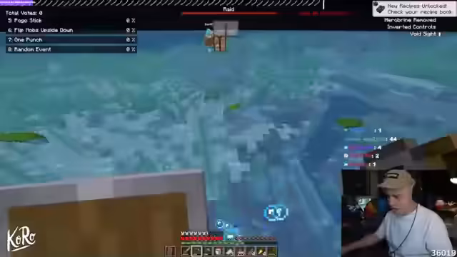 02:22:38Die Spieler werden durch eine Reihe von zufälligen Events überrascht, wie z.B. ein Zeuss-Ult, der zum Abtauchen zwingt, oder eine Goldverzauberung, die Gegenstände in Gold umwandelt. Dies führt zu einem hektischen Kampf gegen Hostile Mobs und zu einem erheblichen Ressourcenverlust. Die Herausforderungen nehmen so zu, dass der Streamer es als das bisher stressigste Erlebnis bezeichnet.