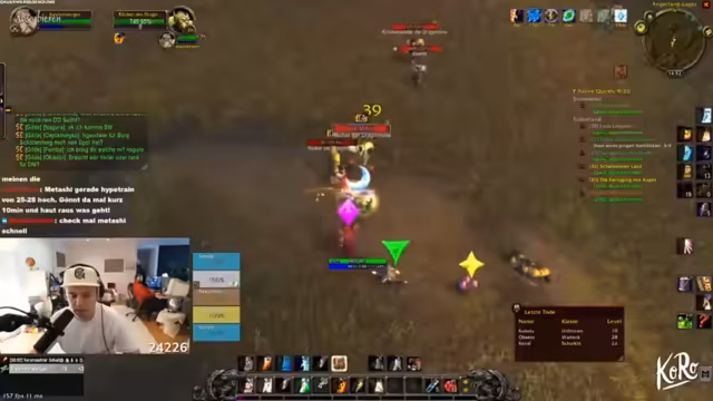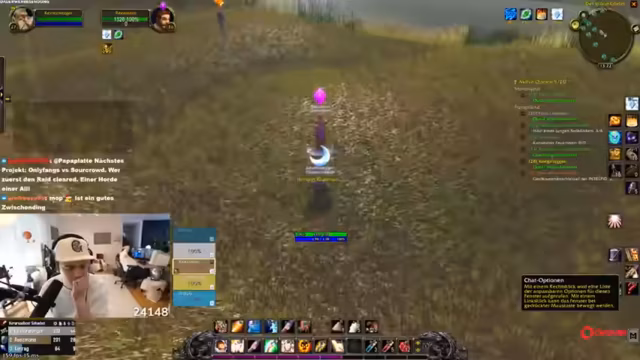 09:53:23Das Team erreicht bedeutende Level-Up-Meilensteine (z. B. Level 30) und feiert den Fortschritt. Sie planen zukünftige Aktivitäten, darunter das Schlingendorntal ab Level 30 mit PvP-Flaggen-Mechaniken. Intensivere Diskussionen entstehen über mögliche Raids wie Onyxia und Molten Core, wobei sie die Risiken von Hardcore-Runs einschätzen und Priorisierungsstrategien für Raid-Teilnehmer entwickeln. Ein Spieler berichtet von einem technischen Problem mit einem Disconnect bei 15% HP, das knapp überlebt wurde. Humoristische Momente entstehen durch interne Dynamiken, z. B. über Todesängste oder unerwartete Loot-Erfolge mit Blauen Gegenständen.