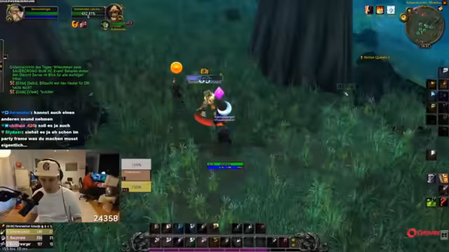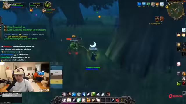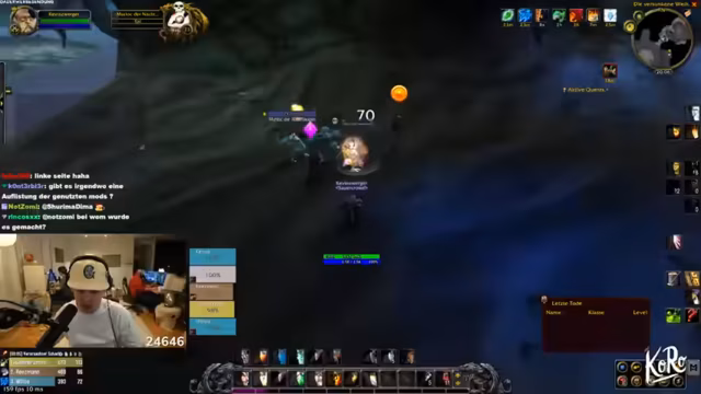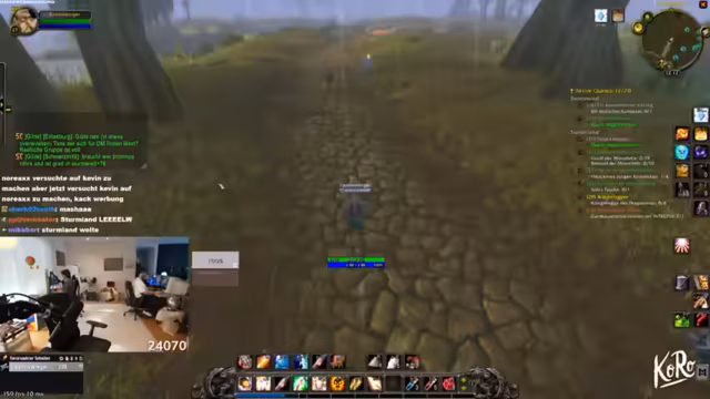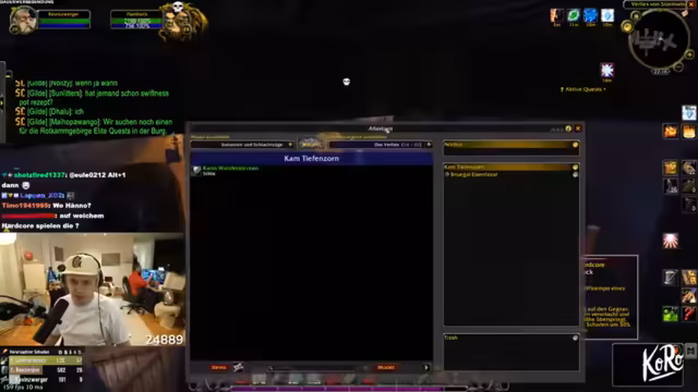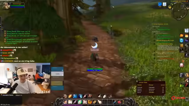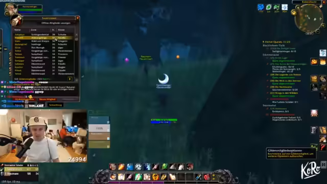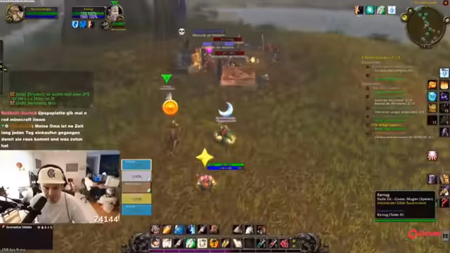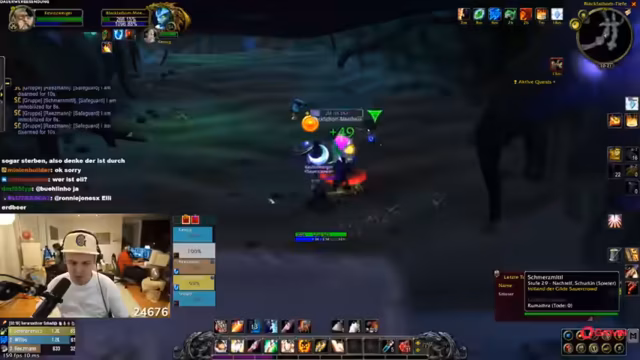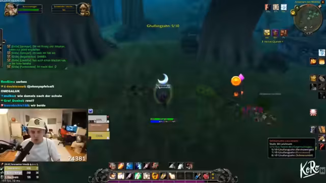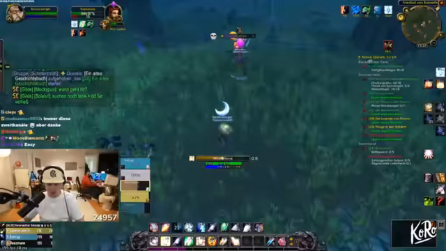 11:14:29Die Gruppe questet gemeinsam in Dunkelwald, sammelt Quest-Gegenstände wie Spinnengift und Skelettfinger, und teilt sich für Sammelziele auf. Skill-Punkte werden verteilt, und Strategien für den Umgang mit Elite-Mobs wie Moradim werden diskutiert. Es wird über Addon-Überlastung und Performance-Probleme gesprochen, während die Gruppe ihre Fortschritte im Gebiet feiert.