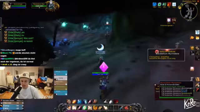05:13:20Ein schwerer Rückschlag tritt ein, als ein Charakter (Julia) im Hardcore-Modus stirbt, was zu emotionalen Reaktionen und einer Diskussion über Wiederaufbau führt. Die Spieler organisieren sich neu, planen gemeinsame Quests und laden andere Spieler zu Kooperationen ein, um den Verlust auszugleichen. Dabei geht es um strategische Anpassungen, sicherere Farmmethoden und die Vorbereitung auf anspruchsvollere Dungeons wie Molten Core.