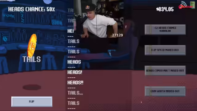 01:38:35Während der Wartezeit auf die Quizshow spielten der Streamer und Koko ein Münzflipspiel namens 'Unfair Flips'. Ziel war es, zehnmal hintereinander Kopf zu werfen, obwohl die Wahrscheinlichkeit nur bei 30% lag. Sie versuchten durch Upgrades die Gewinnchancen zu erhöhen, was zu einer intensiven und spannenden Session führte. Der Streamer analysierte die Mathematik hinter den Wahrscheinlichkeiten und die möglichen Outcomes.