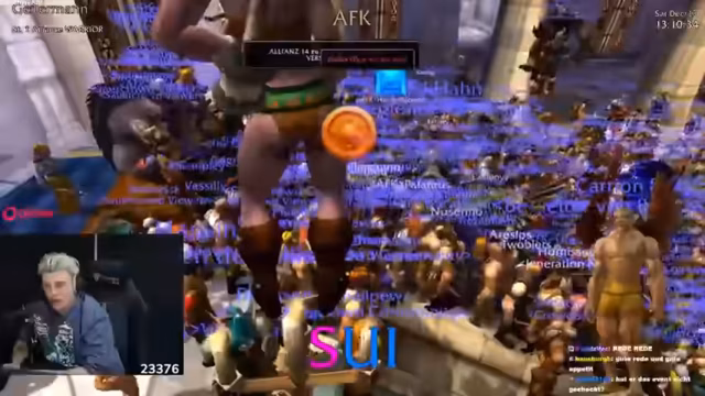 02:40:32Nachdem sich die Teilnehmer in der Hauptstadt Sturmwind versammelt haben, beginnen sie einen 'RP Walk' (Rollenspiel-Lauf) durch die Stadt, was zu einer chaotischen und beeindruckenden Massenszene führt. Die Straßen sind überfüllt mit Spielern, was zu Lag und Verwirrung führt. Trotzdem ist die Stimmung euphorisch. Der Streamer hält einen Moment inne, um allen die Ingame-Musik vorspielen zu lassen, um die finale Entscheidung für die Allianz zu unterstreichen und das Event offiziell zu starten.