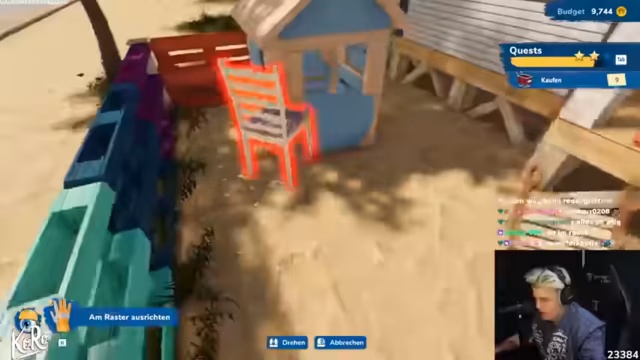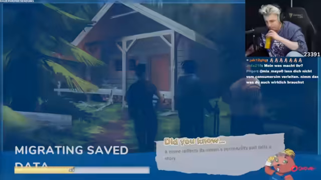 08:15:44Bei der Einrichtung des Cafés am Strand begeht der Streamer einen teuren Fehler: Er kauft eine große Menge Farbe in falschen Tönen, statt cremefarben-lila, was von dem Paar gewünscht war. Der Eimer kostet unglaubliche 400 Gold. Trotzdem schlägt er vor, die Farbe einfach zu nutzen, was zu einem schlechten Ergebnis führt. Die Mission wird jedoch als "beschissenste" aller bisherigen bezeichnet. Trotzdem arbeitet er hart daran, alle Aufgaben zu erfüllen, einschließlich des Verkaufs von Möbeln und dem Kauf eines Spielhauses für die Kinder.