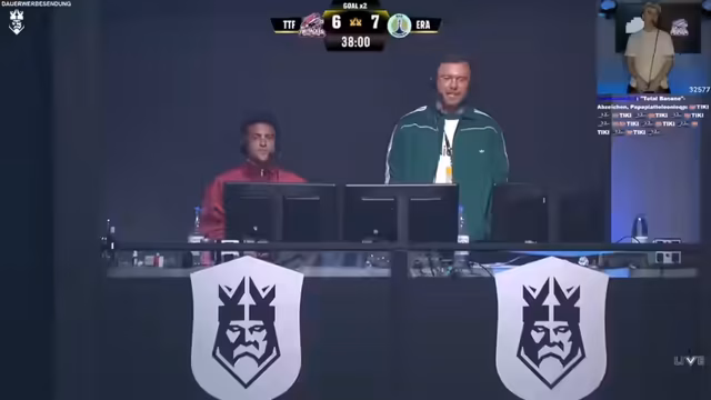 04:23:39Während der technischen Probleme wurde der Spielstand des ersten Spieltags erwähnt, wobei das Team 1-4 zurücklag. Es wurde angekündigt, dass die Spiele ab sofort jeden Samstag und Sonntag stattfinden werden. Die Streamer sprachen von der tollen Atmosphäre in der Halle mit etwa 200 Zuschauern und beschrieben das Spielfeld als 'sehr nice'. Der Streamer äußerte, dass er trotz des stressigen Starts stolz auf die Leistung des Teams sei, das bei den ersten Spielen unter Druck stand.