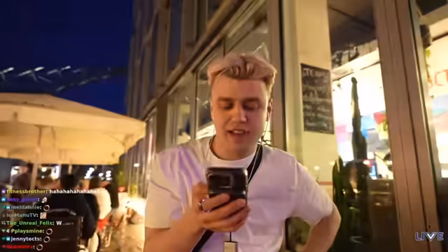 05:38:44Während des IRL-Streams in Köln gibt es verschiedene humorvolle Momente, wie das Verlieren eines Handmikrofons und das Bemühen, unauffällig in einem Restaurant zu filmen. Der Streamer diskutiert über sein Aussehen nach einem anstrengenden Tag und die Herausforderungen, unauffällig in der Öffentlichkeit zu streamen. Dabei werden auch Gespräche über Restaurantbesuche und die Schwierigkeiten, vegetarische Optionen in Barcelona zu finden, angesprochen.