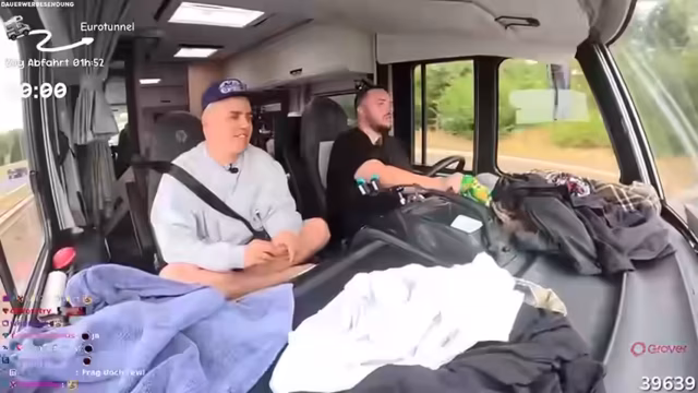05:25:27Die Gruppe bereitet sich auf die Fahrt durch den Eurotunnel vor, die etwa 35 Minuten dauern wird. Es gibt Diskussionen über Internetverbindung während der Fahrt, und es wird geplant, dass Akri ein Backup-Streaming-Programm bereitstellt, falls die Verbindung unterbrochen wird. Diebesondere Erfahrung des Zugfahrens wird als aufregend beschrieben.