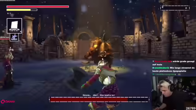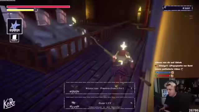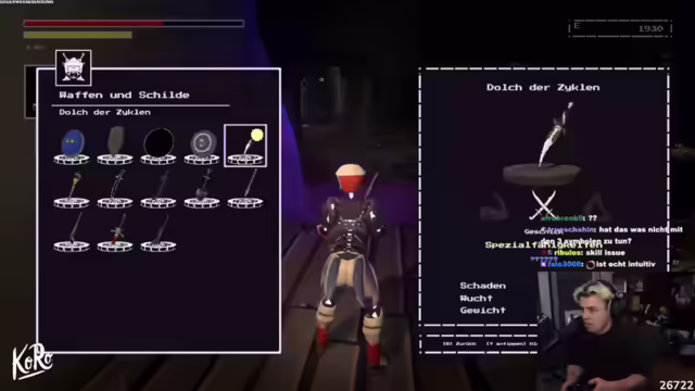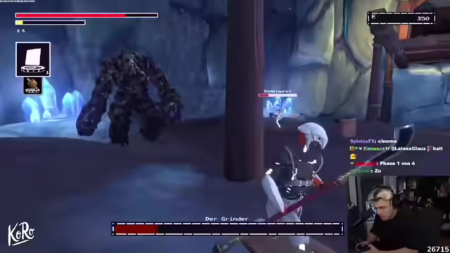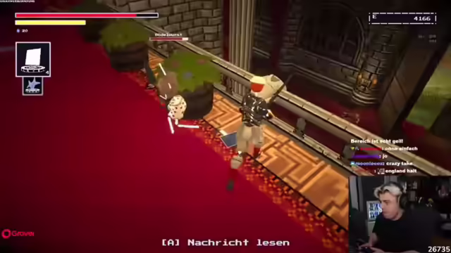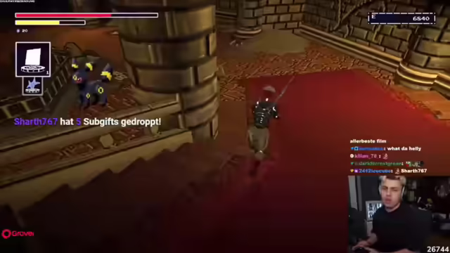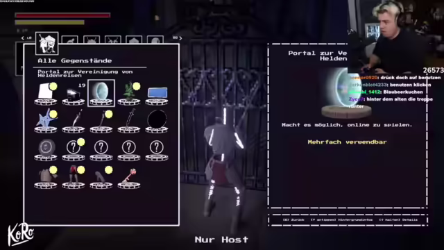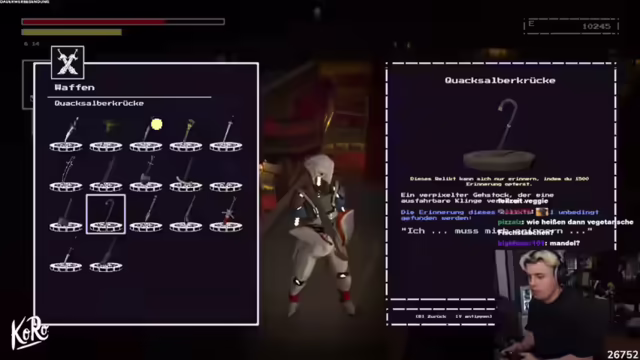 02:57:40Die Erkundung eines neuen Gebiets beginnt mit dem Besiegen von Gegnern unter Einsatz verschiedener Waffen und Items, darunter Schuriken und spezielle Ausrüstungsgegenstände. Ein gefundener Helm reduziert die Aggressionsreichweite von Gegnern. Es wird über die Möglichkeit diskutiert, einen Pralbecher mit Ruden auszurüsten, um die Crit-Rate zu erhöhen. Die Gruppe entdeckt einen Dungeon mit einem Fahrstuhl, der jedoch noch nicht aktiviert werden kann. Diskussionen entstehen über den Weg zum Mond, angestoßen durch Hinweise im Chat, die sich möglicherweise als Ragebait herausstellen. Ein Überraschungsangriff führt zum Erhalt der Chef-Schrobel-Rüstung, die jedoch sehr schwer ist. Es wird überlegt, welche Attribute erhöht werden müssen, um mehr tragen zu können, wobei Stärke in Betracht gezogen wird. Ein Shortcut wird entdeckt, und es kommt zu einer kurzen Snackpause. Ein weiterer Weg wird gefunden, aber ein Charakter stirbt unerwartet. Die Gruppe überlegt, ob das Dungeon mit einem Bordell in Verbindung steht und äußert humorvolle Kommentare dazu.